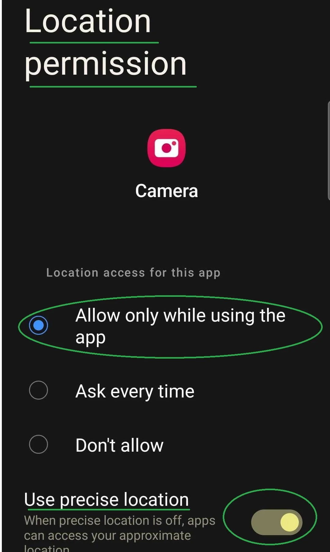 Check “Allow only hile using the app” and turn on the toggle for “Use precise location”