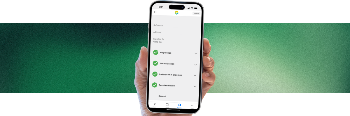 The mobile app installers use on site to grab photos, serials and signatures